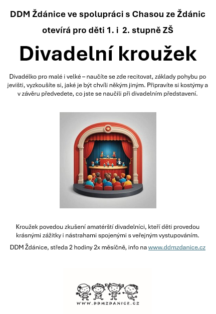 Divadelní kroužek má za sebou první schůzky a už teď Vám můžeme slíbit první minipředstavení, které se bude konat 29. 11. jako doprovodná akce na Těšíme se na Ježíška. Snad to klapne a těšíme se.